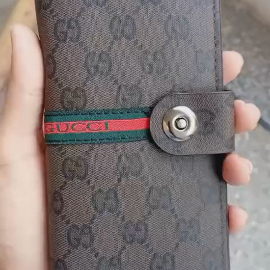 The Gucci Style Long Wallet in off white and brown is a refined accessory designed for those who appreciate luxury and practicality. Crafted with high-quality materials and detailed finishing, this wallet offers a sleek long silhouette that provides ample space for cash, cards, and essentials while maintaining a slim and elegant profile.